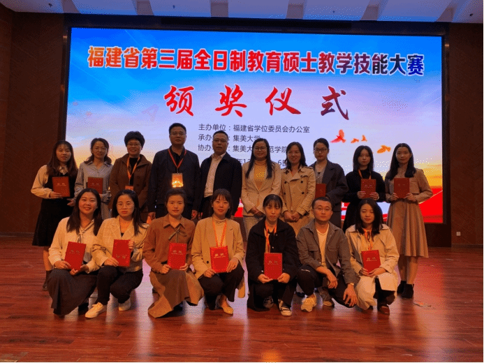 据悉,福建省第三届全日制教育硕士教学技能大赛由福建省学位委员会办公室主办,集美大学承办。比赛旨在展现我省高校教育硕士研究生的专业技能水平,进一步推动各高校夯实研究生基础教育,实施卓越教师培养计划。来自福建师范大学、集美大学和我校的54位选手进入决赛,决赛包括1小时限时教学设计、15分钟模拟课堂教学和5分钟专家提问三个环节。